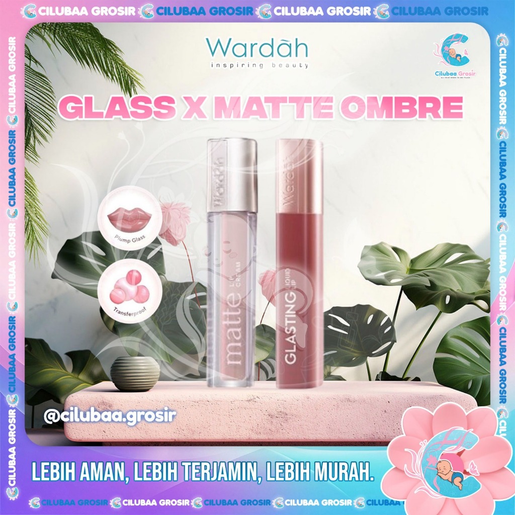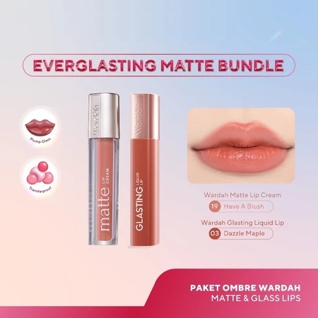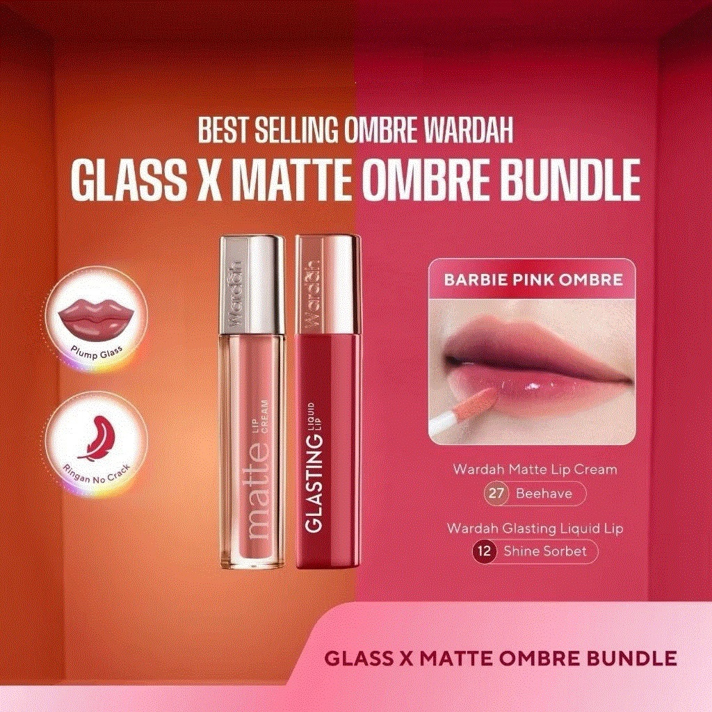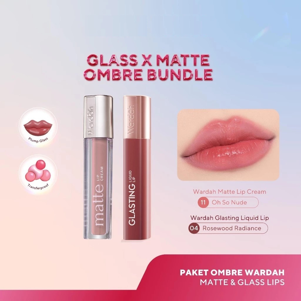 WARDAH Ombre Series || Wardah Glasting Lip + Matte Lip Cream || Paket Ombre Lip Bundling Glass x Matte || Waterproof Longlasting