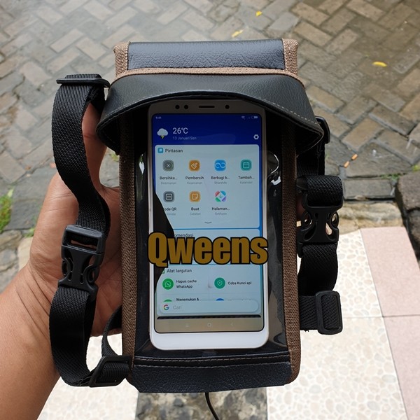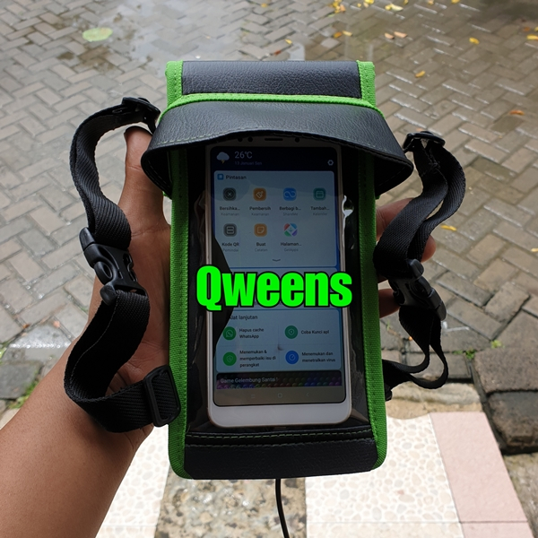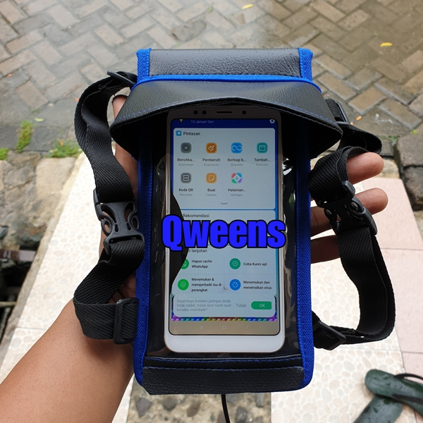 Holder hp motor waterproof ada topi anti silau dengan lubang chargher dan headset PHONE HOLDER ORIGINAL Holder handphone di dasboard motor
