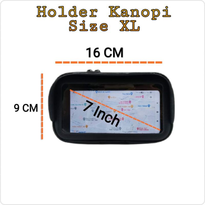 Holder HP Waterproof + Kanopi pasang Stang & Spion Motor Size XL (7in)
