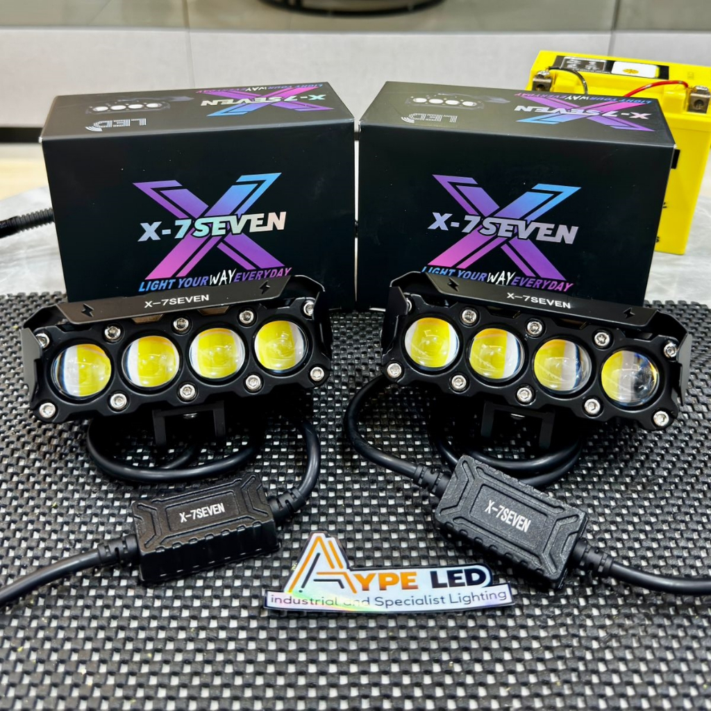 LAMPU SOROT TEMBAK 4 MATA X-7SEVEN PREMIUM DRIVER EKSTERNAL FOGLAMP LAMPU TEMBAK KABUT 2 WARNA KUNING PUTIH HIGH LO