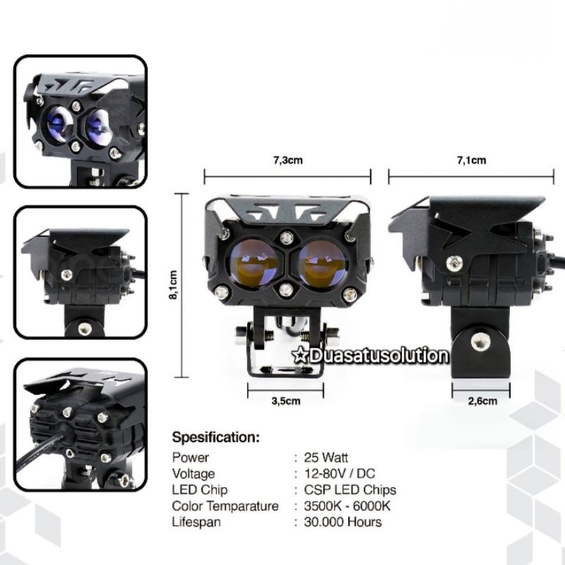 LAMPU TEMBAK SOROT 2 MATA BLUE LENS PUTIH KUNING ORIGINAL NINE LUMINOSLED Q6PRO PLUS DEVIL EYE