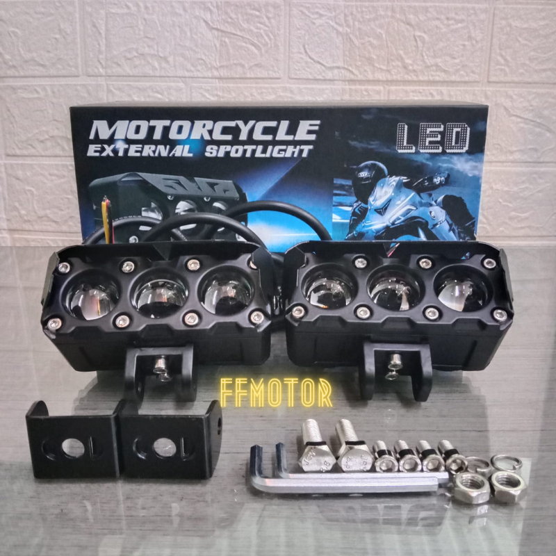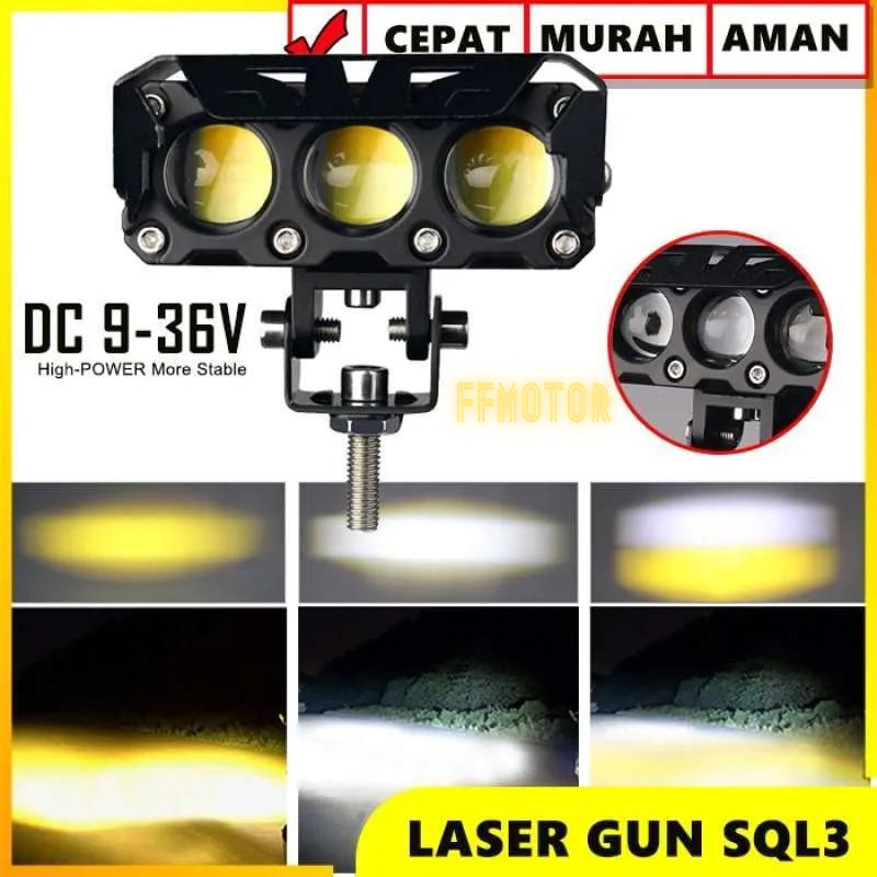 LAMPU TEMBAK SOROT SQL 3 MATA 3 LED LASER GUN KIPAS HI LOW 2 PCS HIGH PUTIH LOW KUNING