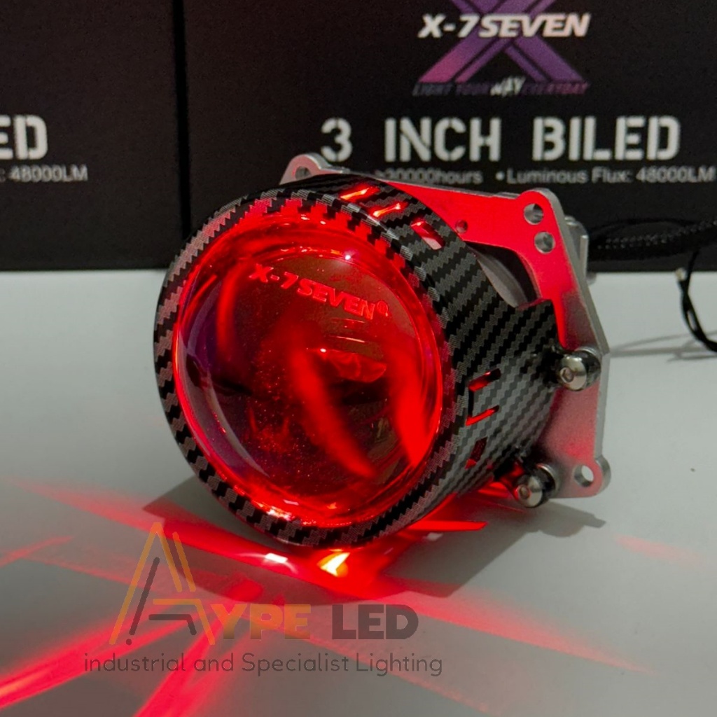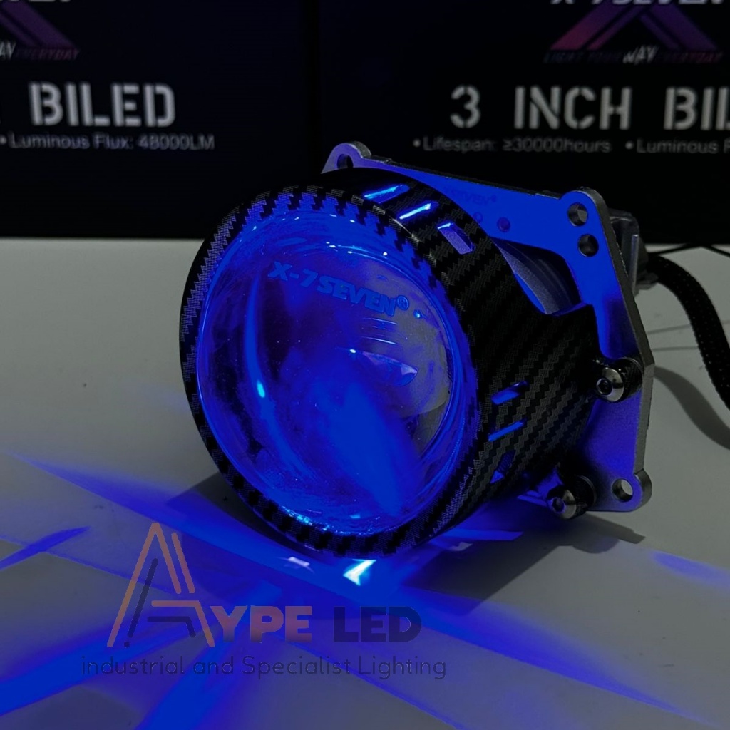 ORIGINAL BILED X-7SEVEN 2,5 INCH PURPLE LENS X7 100WATT PLUS DEMON PAKET HEMAT BALAST EXTERNAL PROJIE BILED MOTOR MOBIL