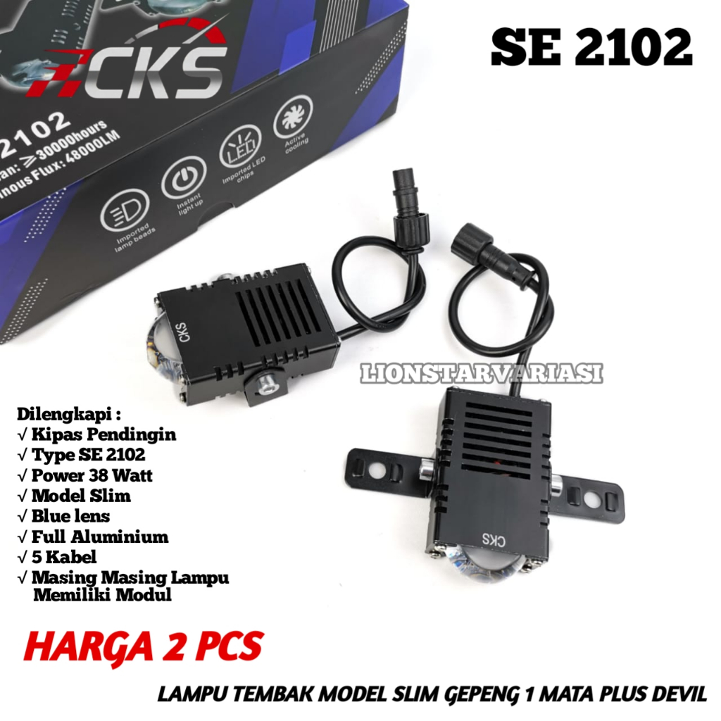 CKS SE 2102 - 2 PCS LAMPU TEMBAK SLIM GEPENG PLUS DEVIL DAN KIPAS PENDINGIN MOTOR MOBIL WATERPROOF