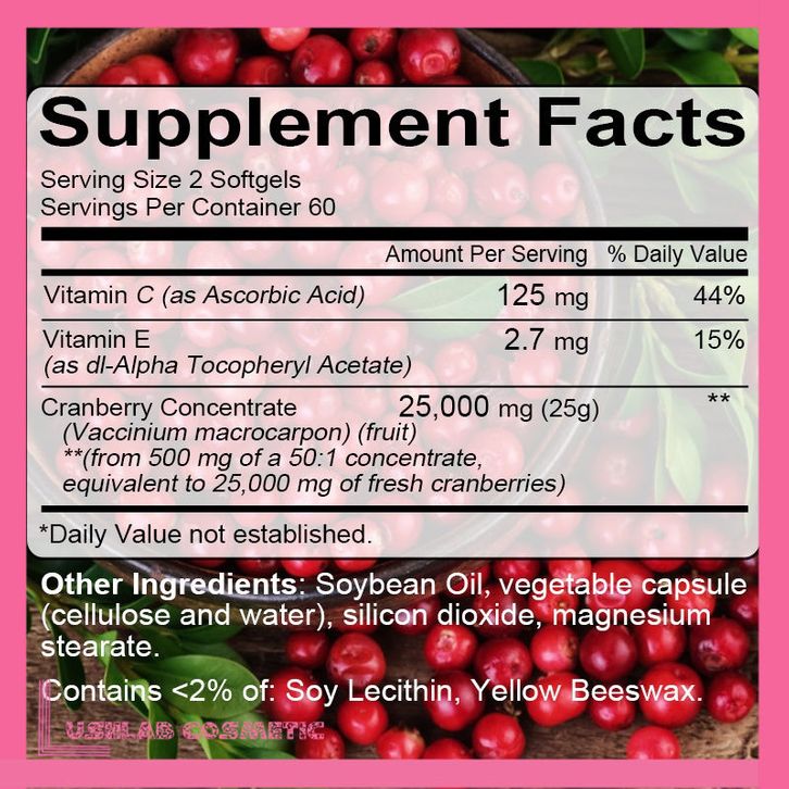 Cranberry 25 000 Mg with Vitamin C Urinary Health and Immune Support Supports Cardiovascular Health Cranberry
