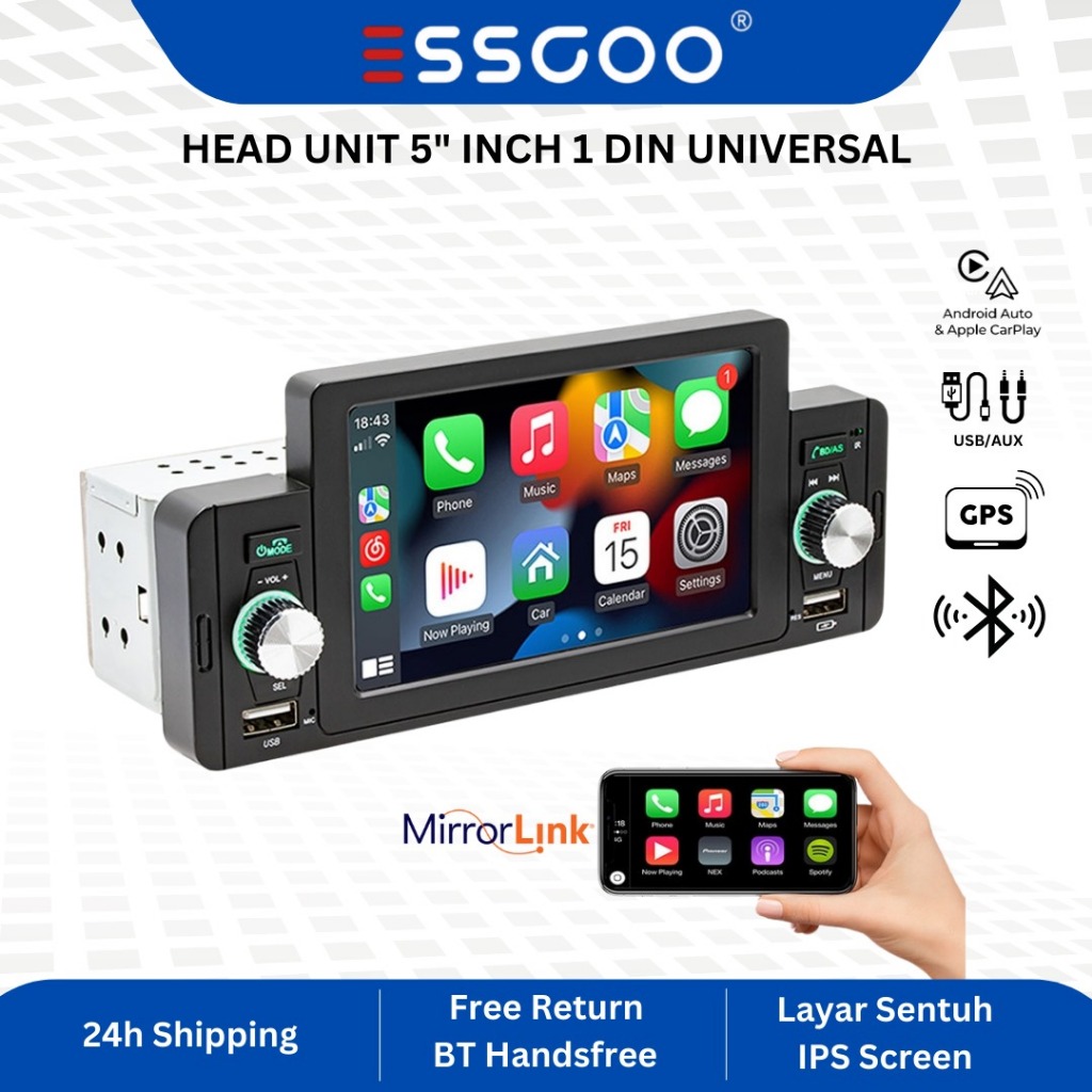 ESSGOO Head Unit 5‘’ Wince SW160C Single Din IPS Screen Carplay Android Auto GPS
