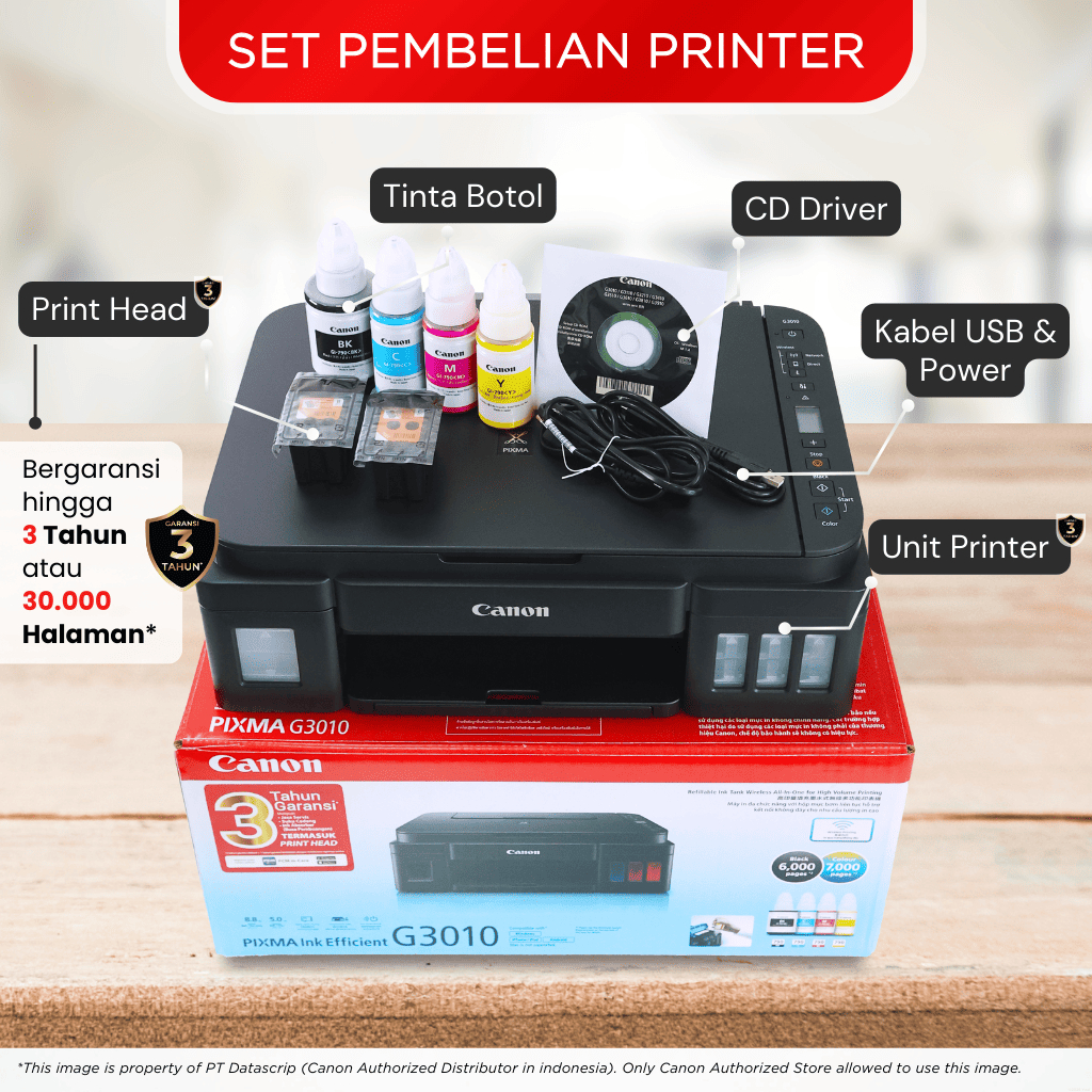Printer Wifi CANON G3010 Print Scan Copy - Original & Garansi Resmi - Printer MegaTank Pengganti G3000 L3150 L3250 415 5