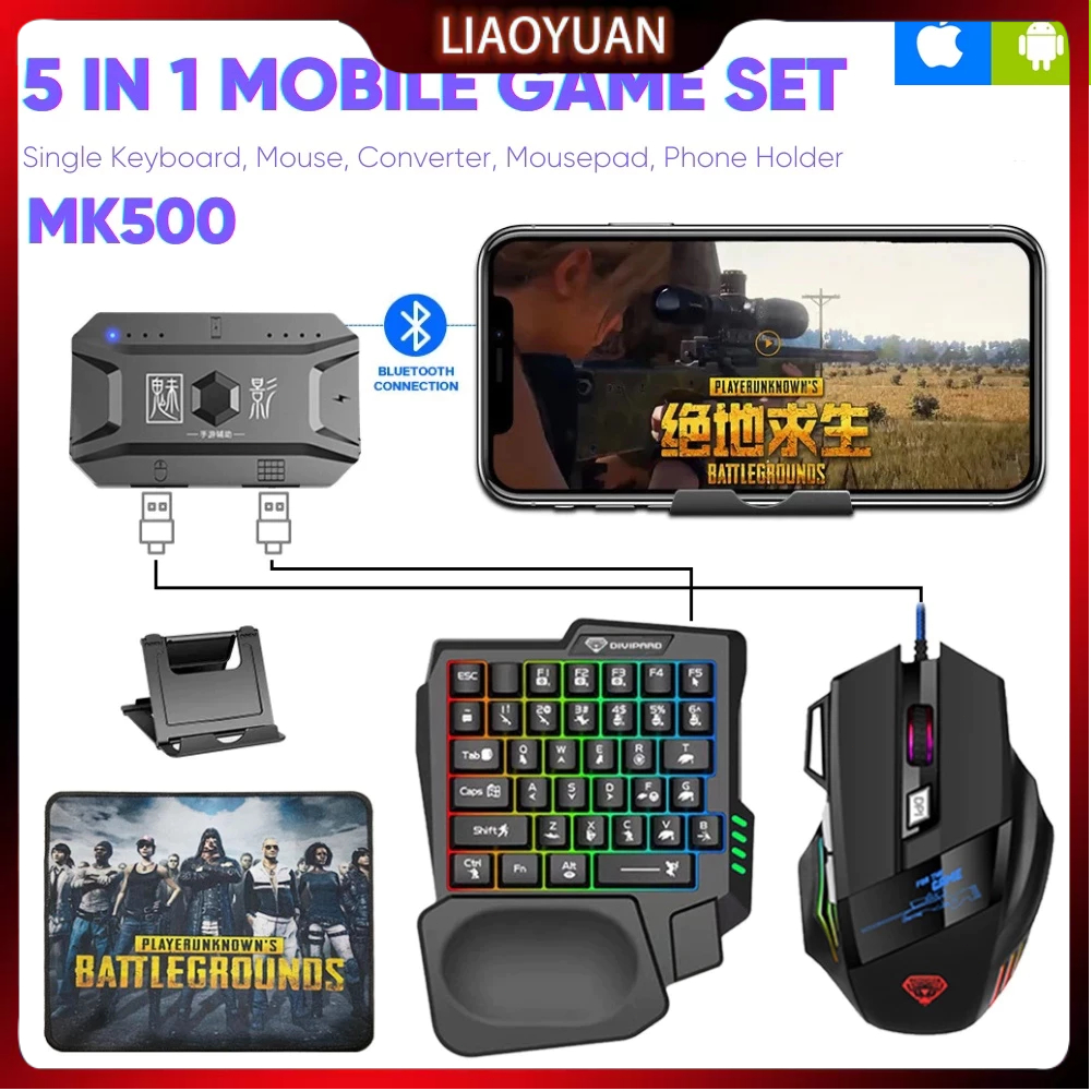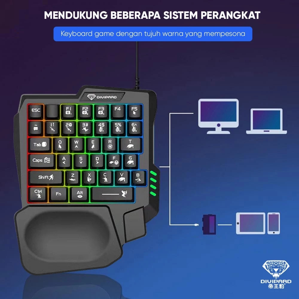 Paket keyboard gaming dan Mouse/Single Hand Gaming RGB Keyboard dan mouse PUBG keyboard gamin USB 5.0 Converter Wired Ke