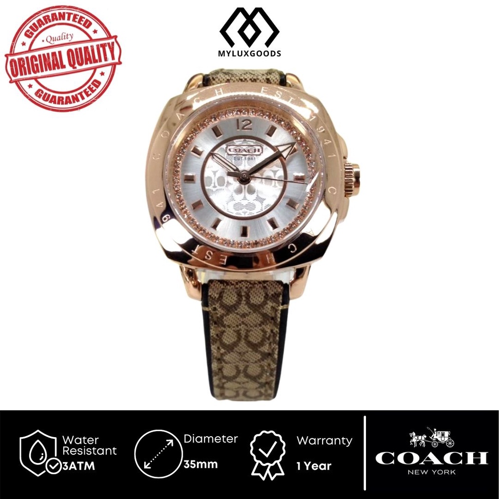 Jam Tangan Wanita Coach White Roseg0ldd Strap Leather