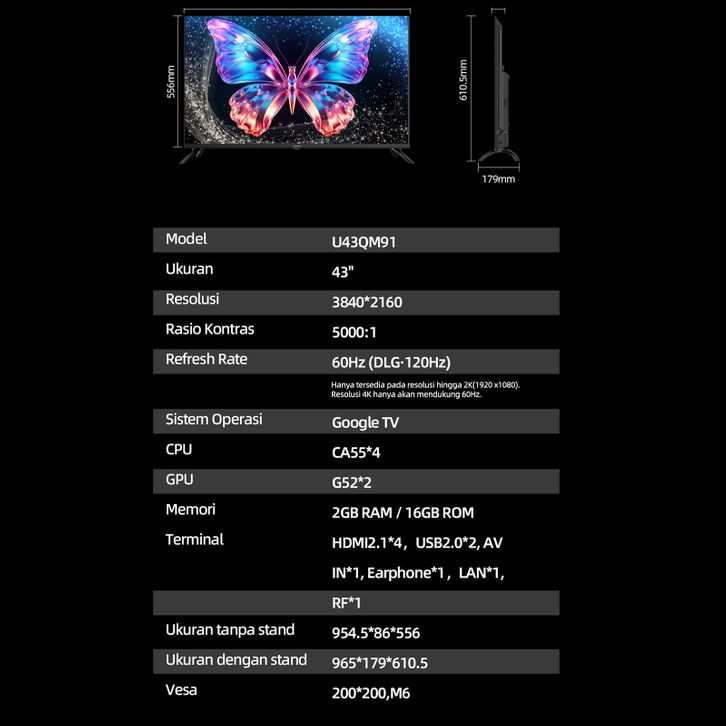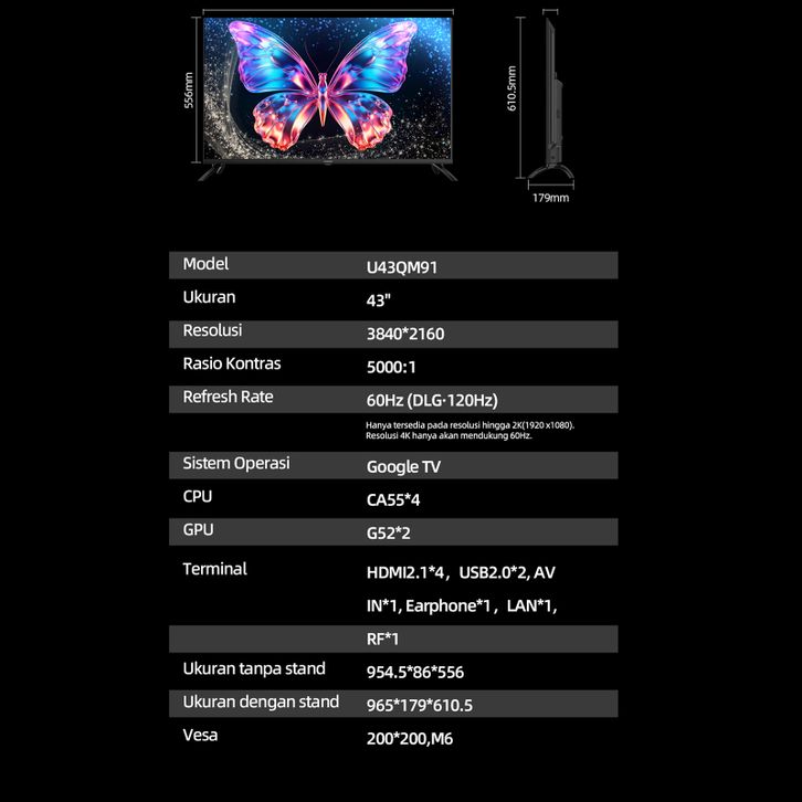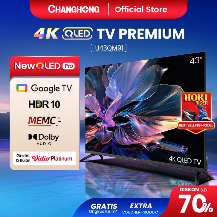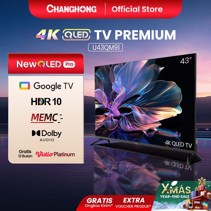 Changhong QLED TV 4K 43 inch Google Smart QLED PRO Digital TV Google Assistant (U43QM91)