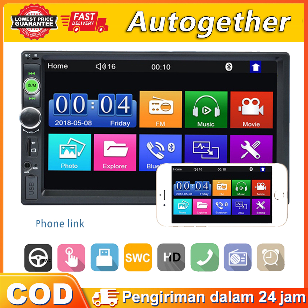 【Kamera Termasuk】Radio Mobil Double Din TV Mobil Universal Head Unit 7 Inch MP5 In Touch Screen Radio Dan Kamera Mundur Mobil