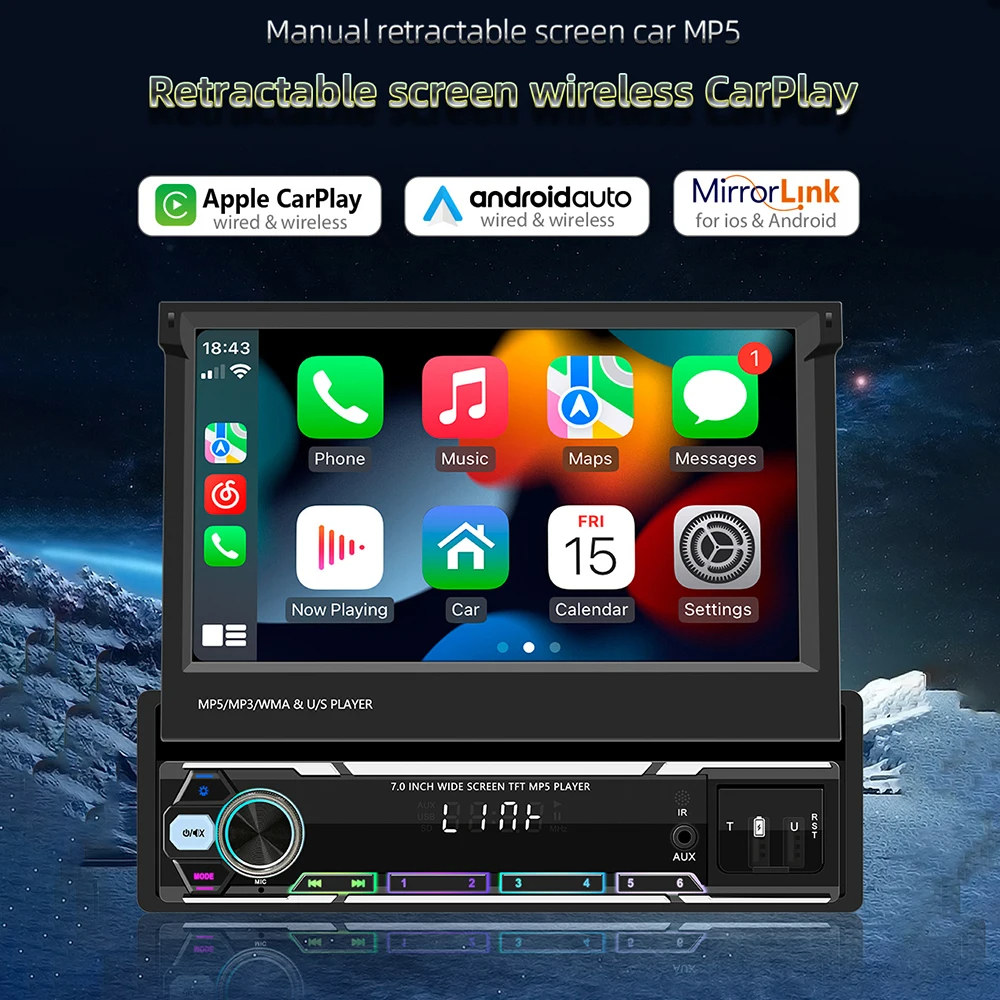 Head Unit Mobil Single DIN Touch Screen HD Bluetooth ISO 7 Inch Hitam 9606W PHYEE
