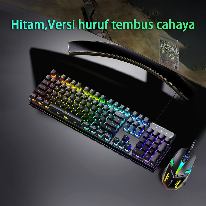 Paket keyboard gaming e-sport/dengan lampu RGB/dengan lampu latar/keyboard 104 tombol/dengan kabel yang terasa mekanis.