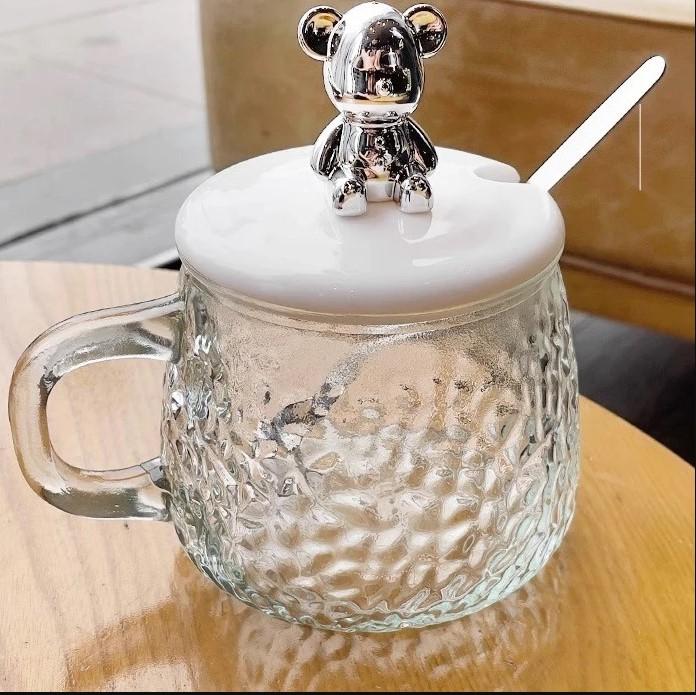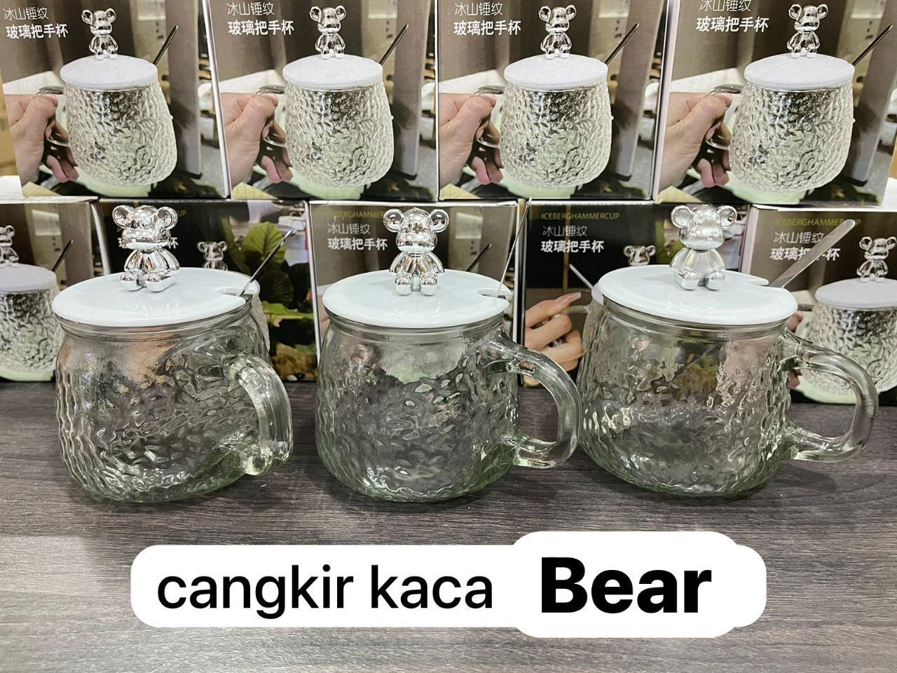 Cangkir Kaca Beruang Bear + Tutup + Sendok
