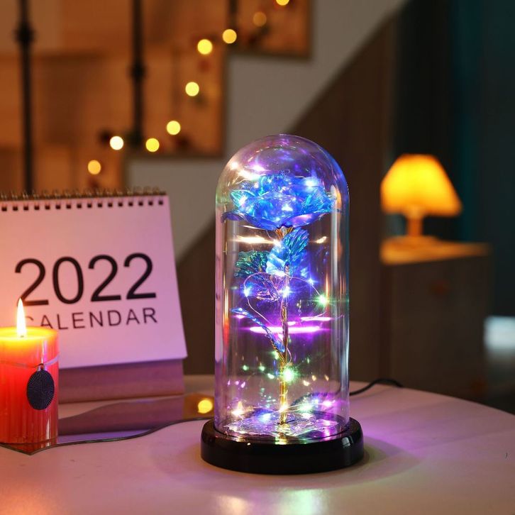 Lampu Led Bunga Mawar Lampu Mawar Dekorasi Rose Hampers Pajangan Kado Hiasan Ruangan Kamar Glass Dome Glassdom