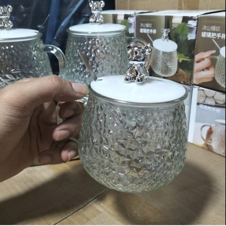 Cangkir Kaca Beruang Bear + Tutup + Sendok