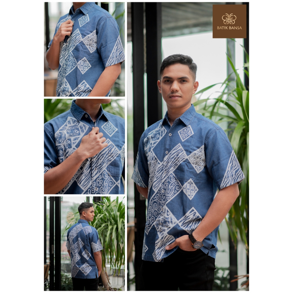 Batik Bansa - Koko - Baju Batik Pria - Baju Batik Premium - Kemeja Batik Denim