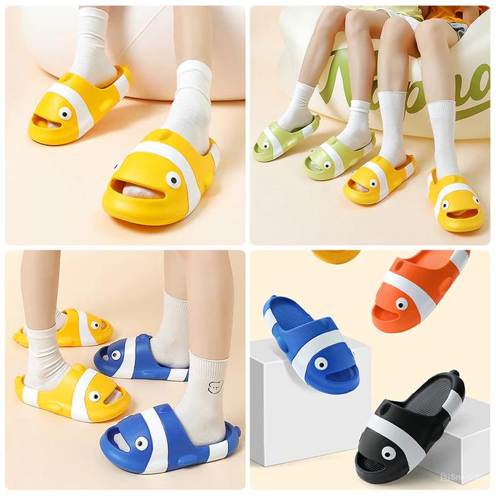 [Star]Sendal Motif Ikan Nemo Sandal Selop Sandal Slip Jelly Sendal Jelly Anak Karakter Nemo Lucu HSN152 - Hitam, 24-25