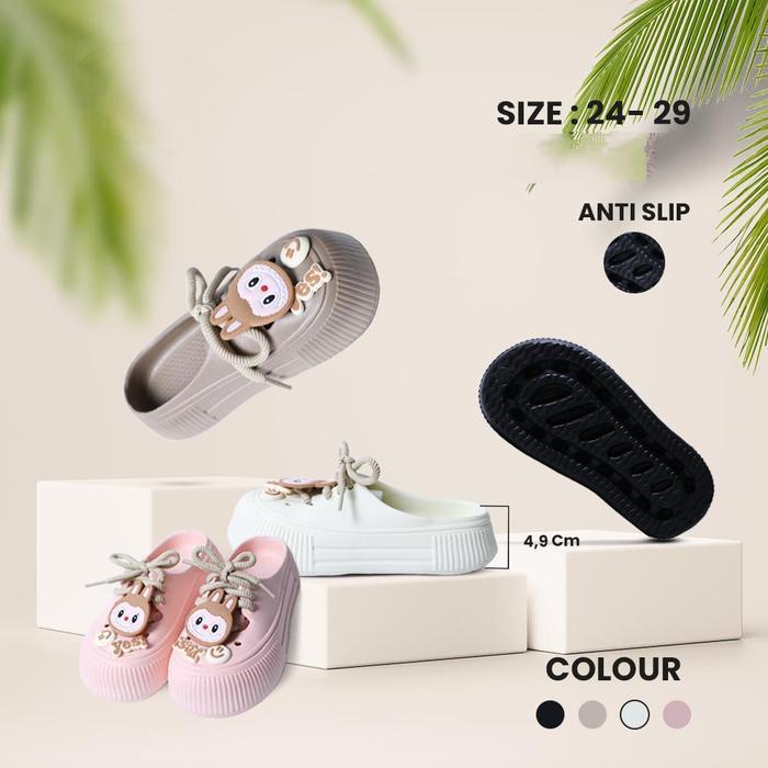 [Star]Sandal Selop Model Terbaru Anak Kekinian Bahan Karet Jelly bergambar Size 24-29 - Hitam, 24/25, Standar