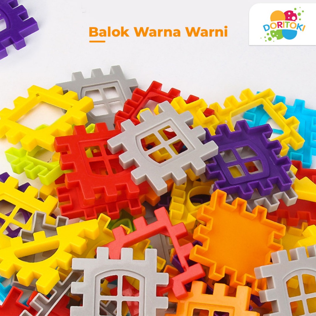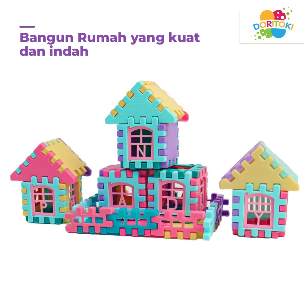 Doritoki SNI Mainan Edukasi Anak Balok Susun Puzzle Imajinasi Bentuk Rumah 120 Pcs Dan 180 Pcs
