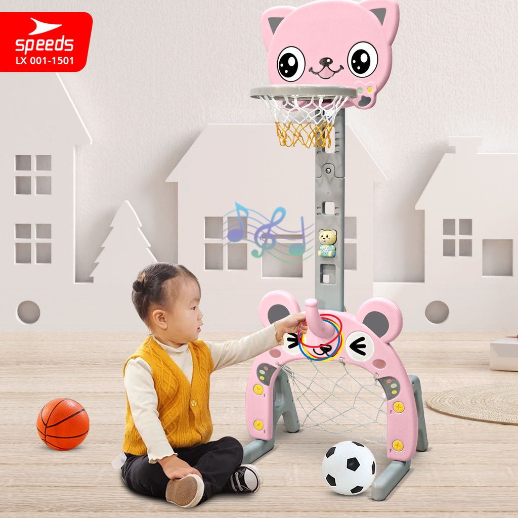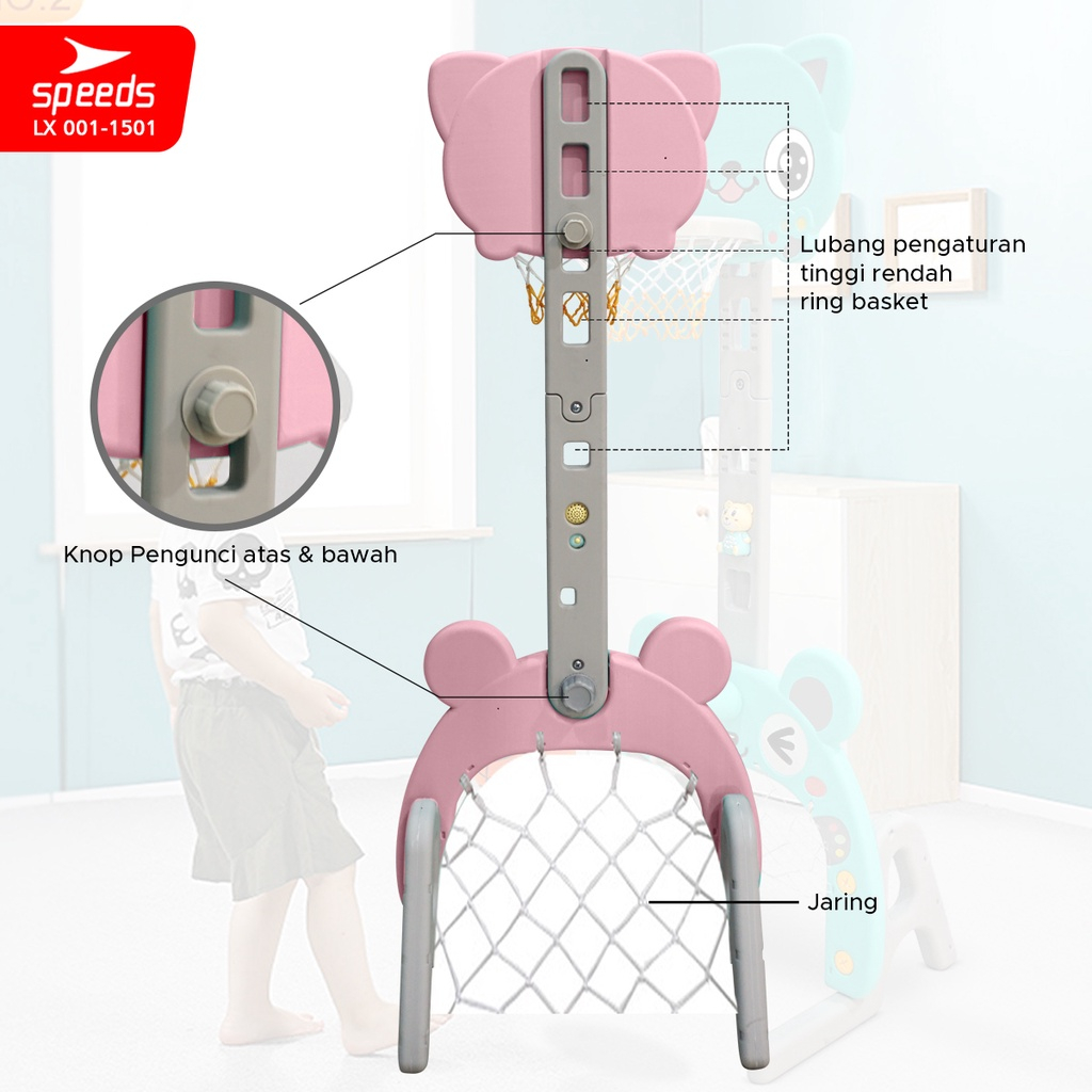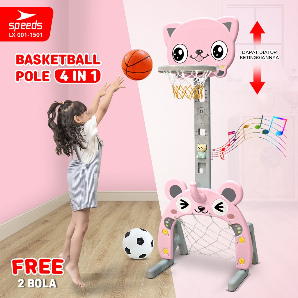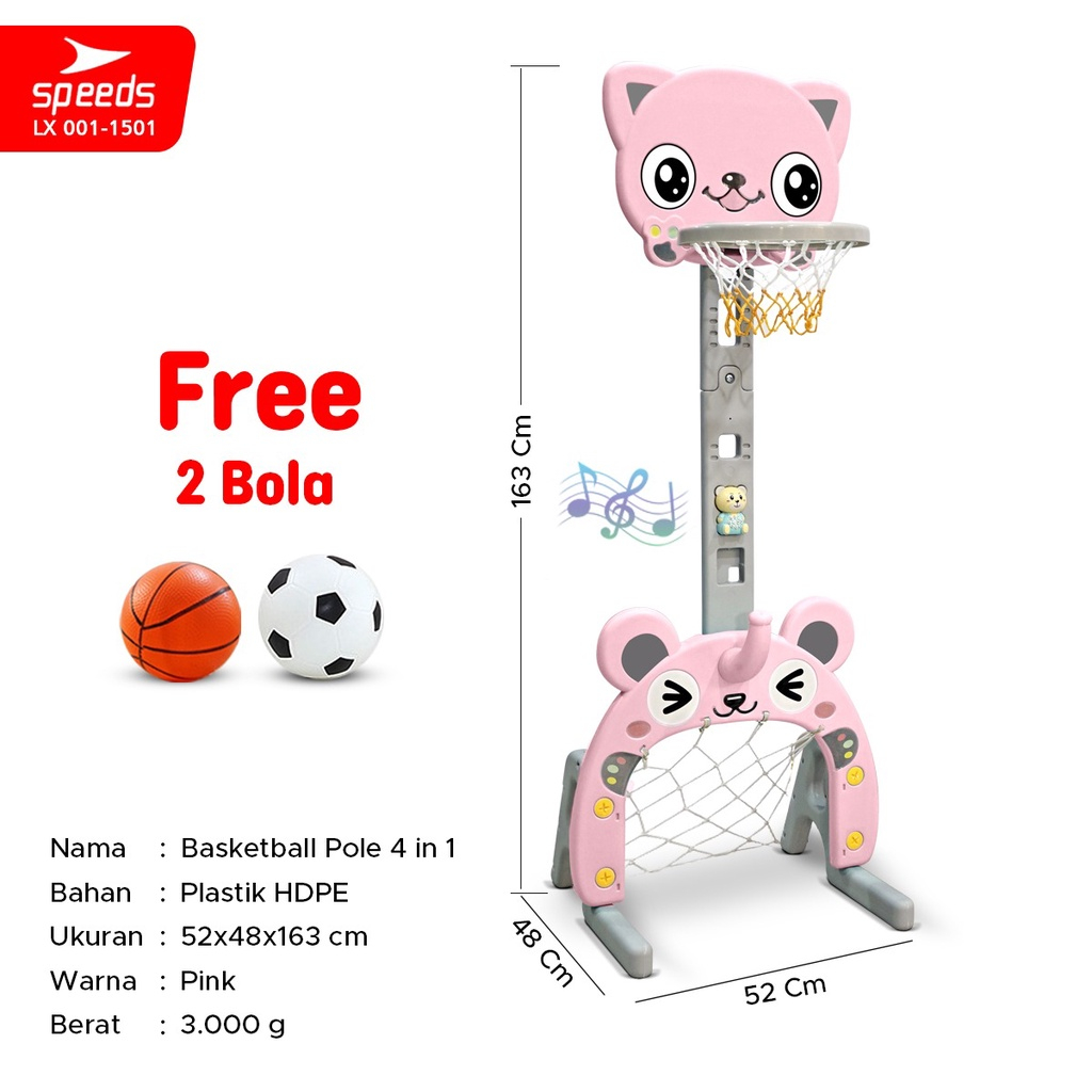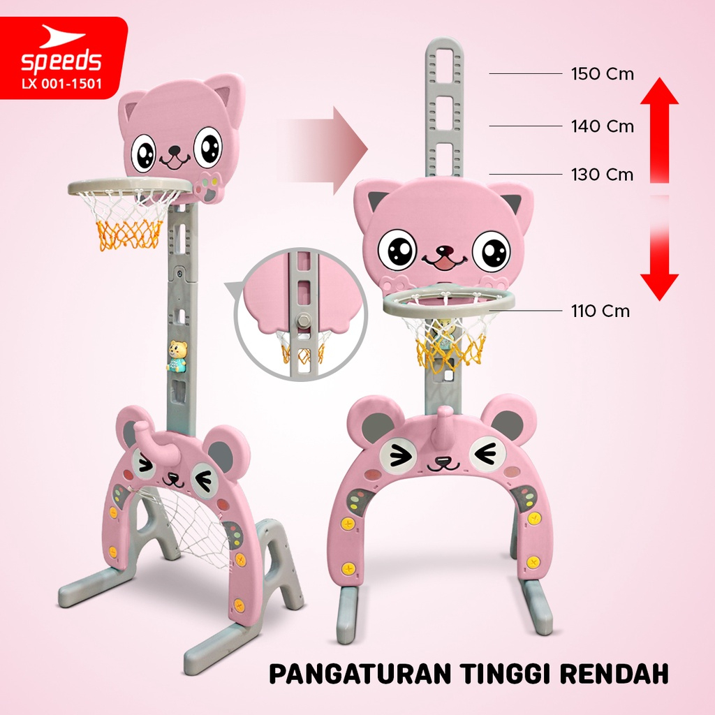 Doritoki SNI Mainan Ring Bola 4in1 Basket Anak Gawang Bola Anak Tiang Basket Karakter Lucu Ring Kuda Kudaan LX 001-1501
