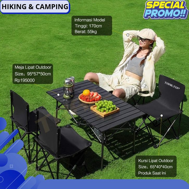 TrailTop Meja Camping Lipat Outdoor Meja Kemping Kursi Lipat Set Meja Lipat Outdoor Portable