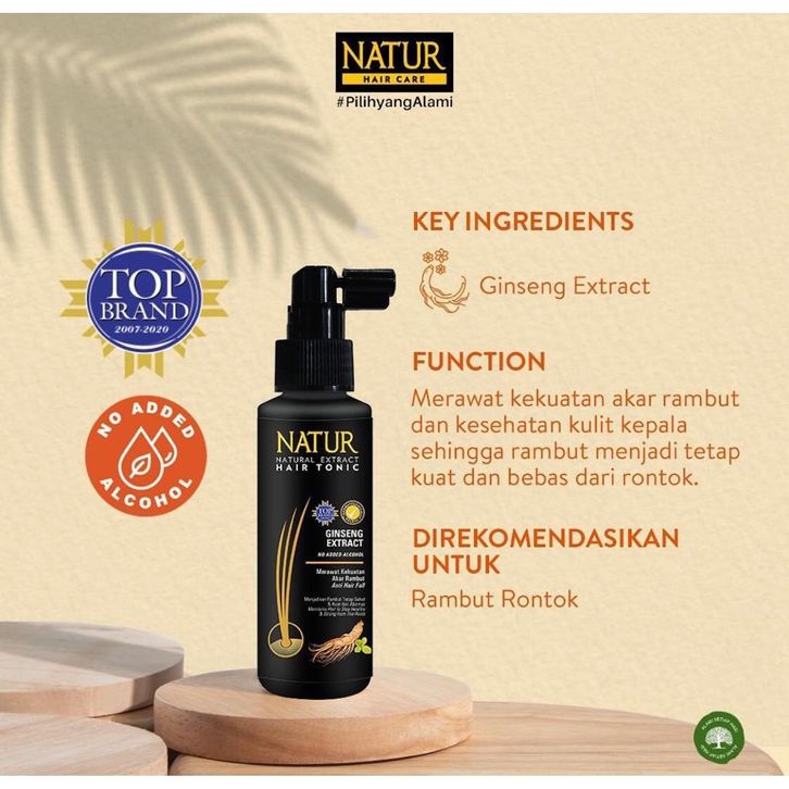 NATUR Shampoo & Hair Tonic 2 in 1 Ginseng Extract - Perawatan Rambut Rontok