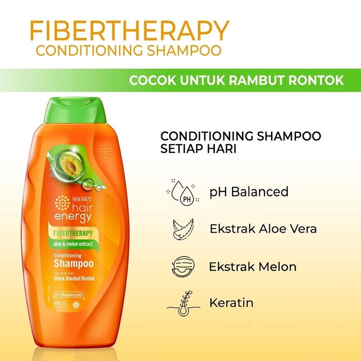 Makarizo Hair Energy Shampoo Botol Fibertherapy 170ml & 330ml Shampoo Pembersih Rambut 2in1 Rambut
