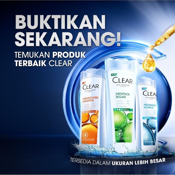 CLEAR Shampoo Anti Ketombe Menthol Segar, Niacinamide 48 Jam Segar Sensasi Dingin dengan 10x Super
