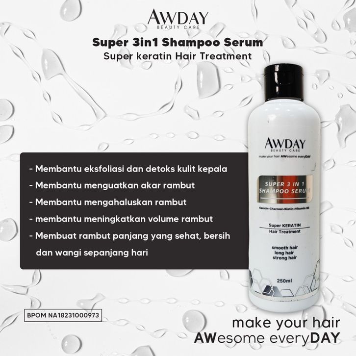 AWDAY super 3in1 shampoo Strengthening 250ml Super Keratin Shampoo / Charchoal Shampoo
