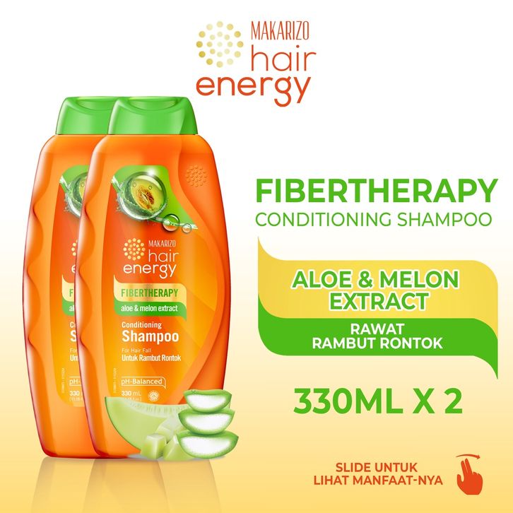 PAKET ISI 2 - Makarizo Hair Energy Fibertherapy Conditioning Shampoo Anti-Hair Loss Aloe & Melon 330