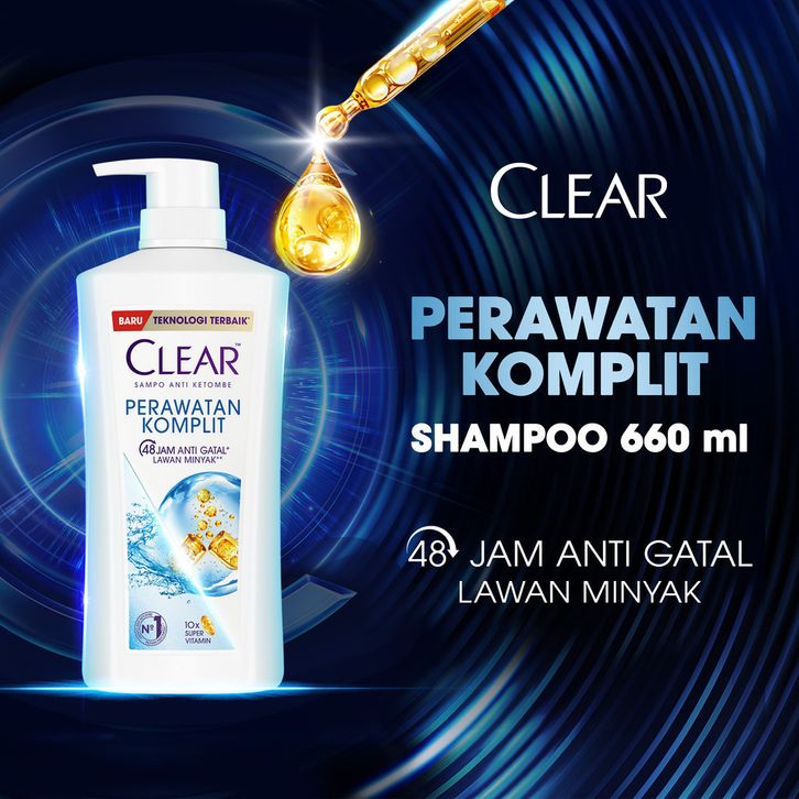 CLEAR Shampoo Anti Ketombe Perawatan Komplit, 48 Jam Melindungi dari Gatal dan Lawan Minyak dengan