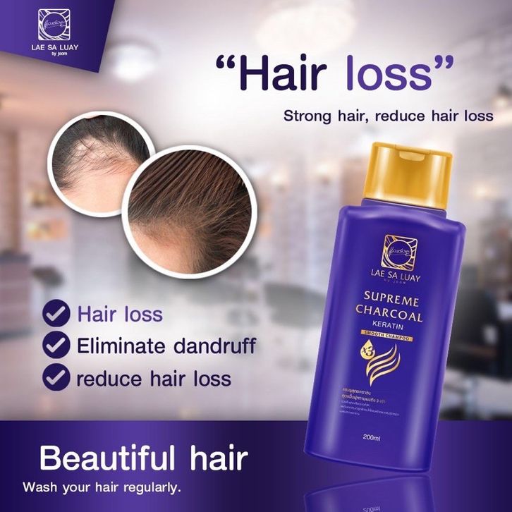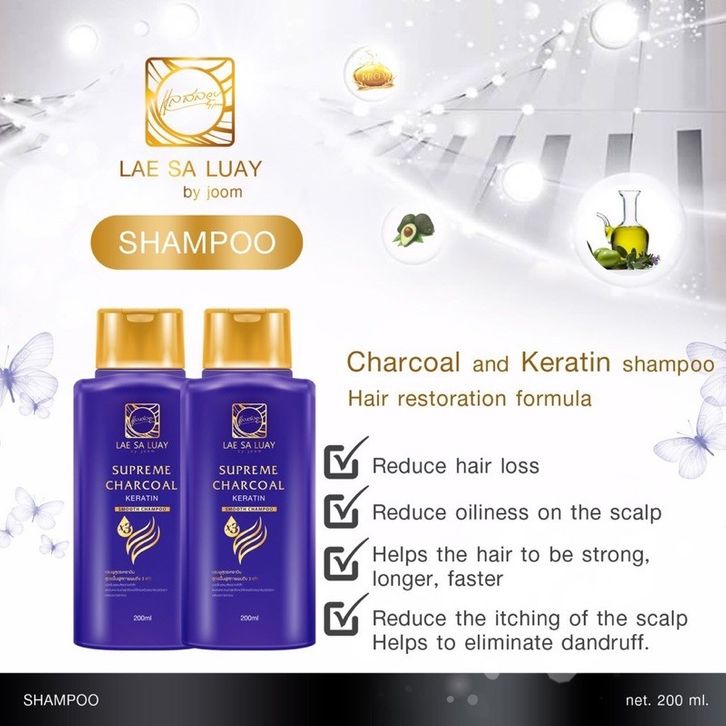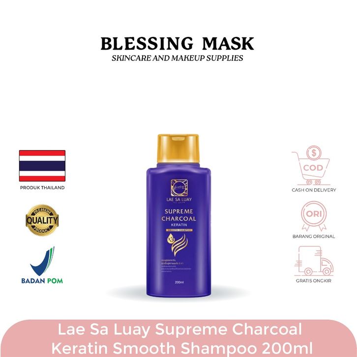 Lae Sa Luay Supreme Charcoal Smooth Shampoo / Keratin Shampoo Shampo Kondisioner 200mL LSL