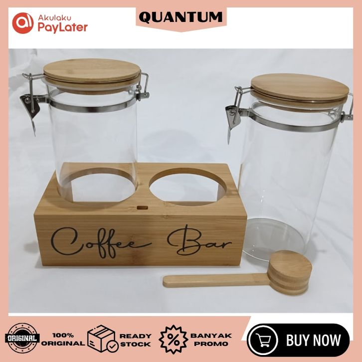 MS Tempat Penyimpanan Kopi Gula Rak Coffee Bar Kayu Toples Kaca Kopi dan Gula