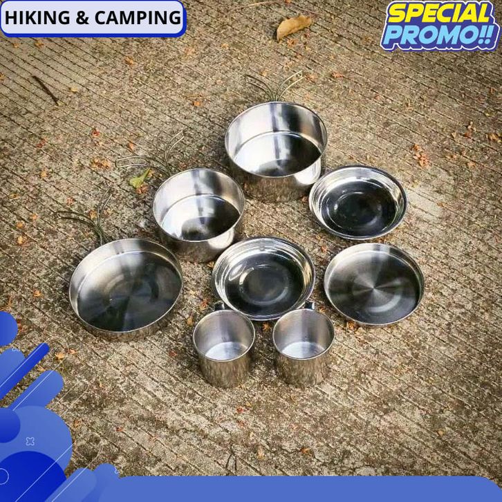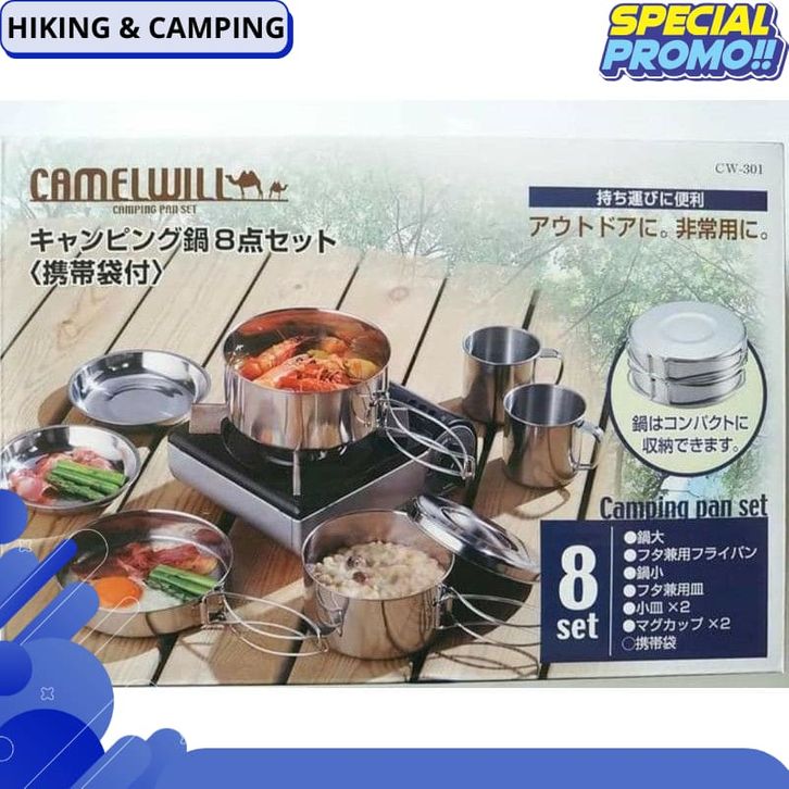 Cooking set merk Camelwil Nesting free gelas - alat masak portabel panci satu set stainless camping outdoor