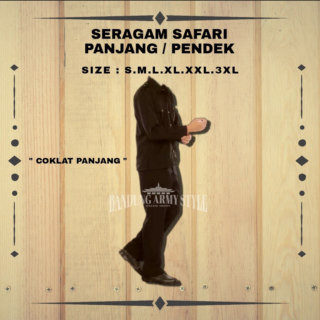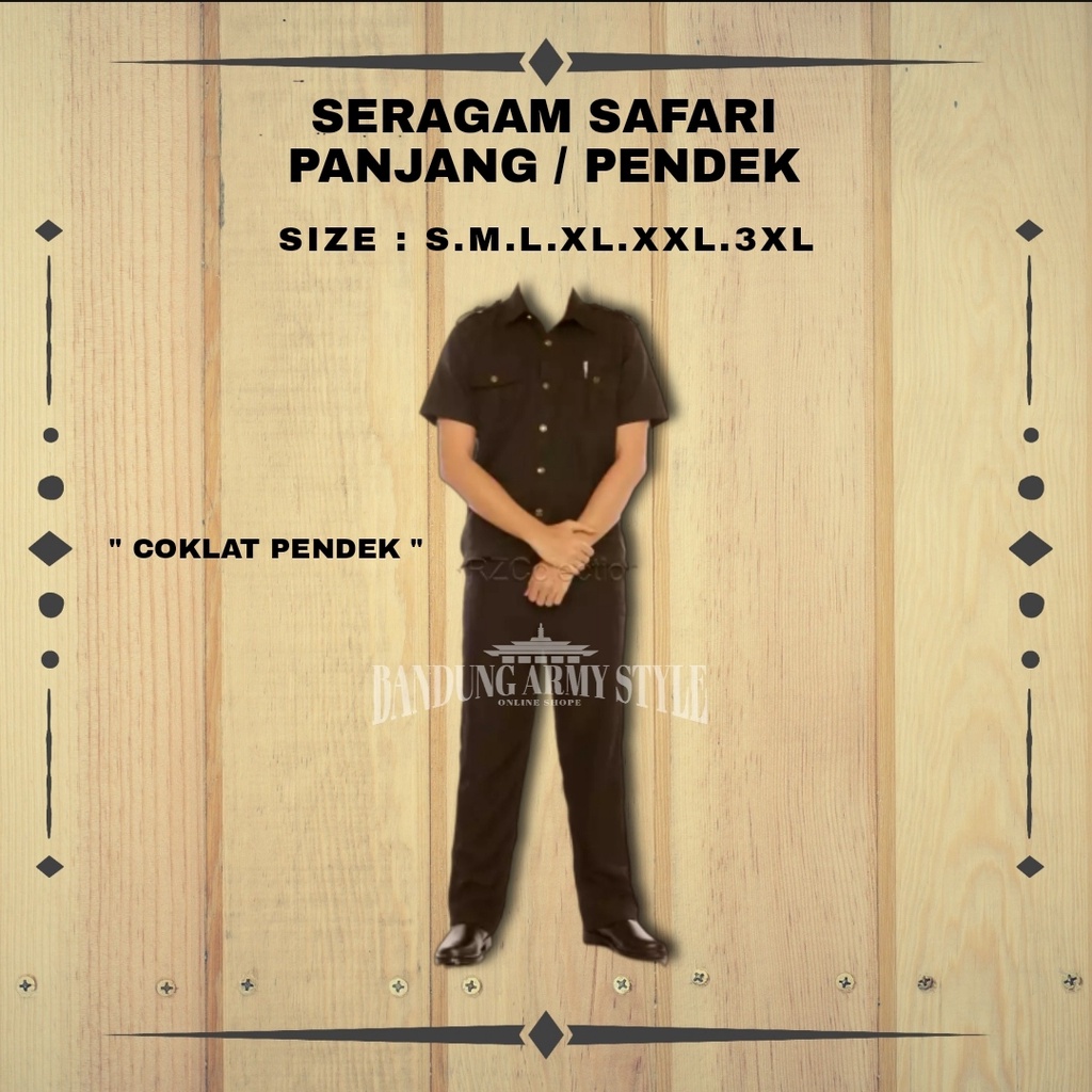 SERAGAM SAFARI SATPAM / SAFARI PANJANG COKLAT /SAFARI PENDEK COKLAT / SAFARI LENGAN PANJANG