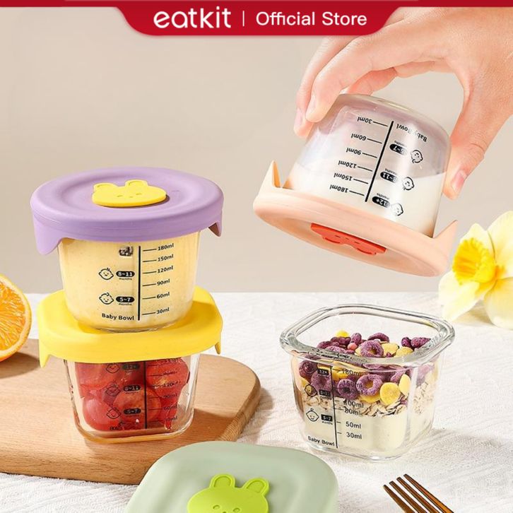 RK - Eatkit Baby Food Container Glass 400ml Tempat Mpasi Kaca 3in1 Wadah Bulat Kotak Food9rade