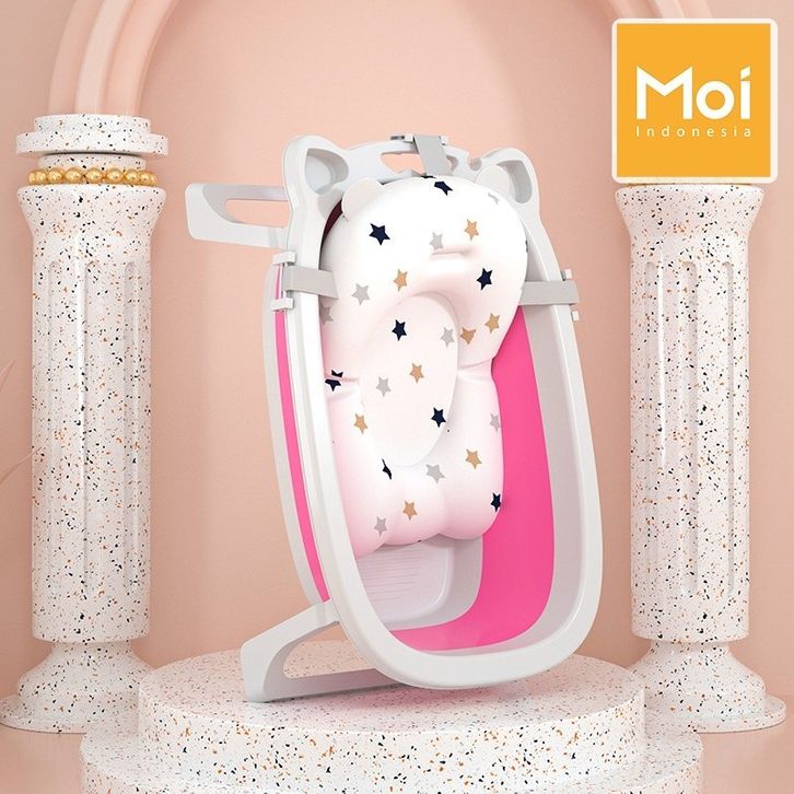 RK - MOI Foldable Baby Bath Tub / Bak Mandi Bayi Lipat dengan Pengukur Suhu dan Bantal Mandi Tempat Mandi Bayi Portable