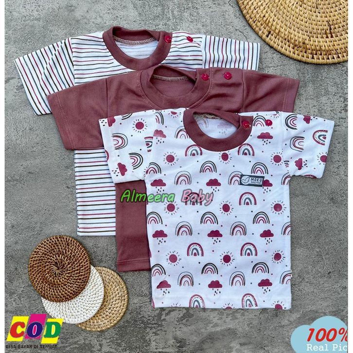 RK - Isi 3 Setelan Baju Bayi Lengan Pendek Kancing Pundak Celana Diapers Panjang Series Dusty Pink Usia 0-18 Bulan Alme