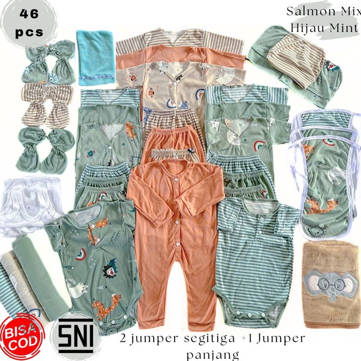 RK - NAKITA 46pcs Paket Perlengkapan Baju Bayi Printing Perlengkapan Baju Celana Set Lengkap Stelan Lengan Panjang Pen