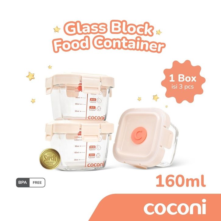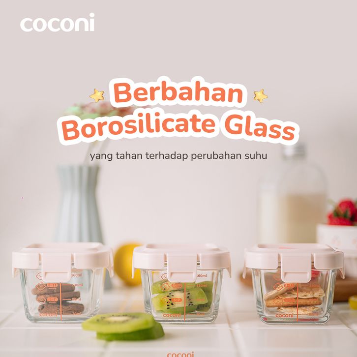 RK - COCONI Baby Food Glass Container 3 Pcs x 160ml | Wadah Penyimpanan Makan Kaca Anak MPASI Kedap Udara Tahan Panas i