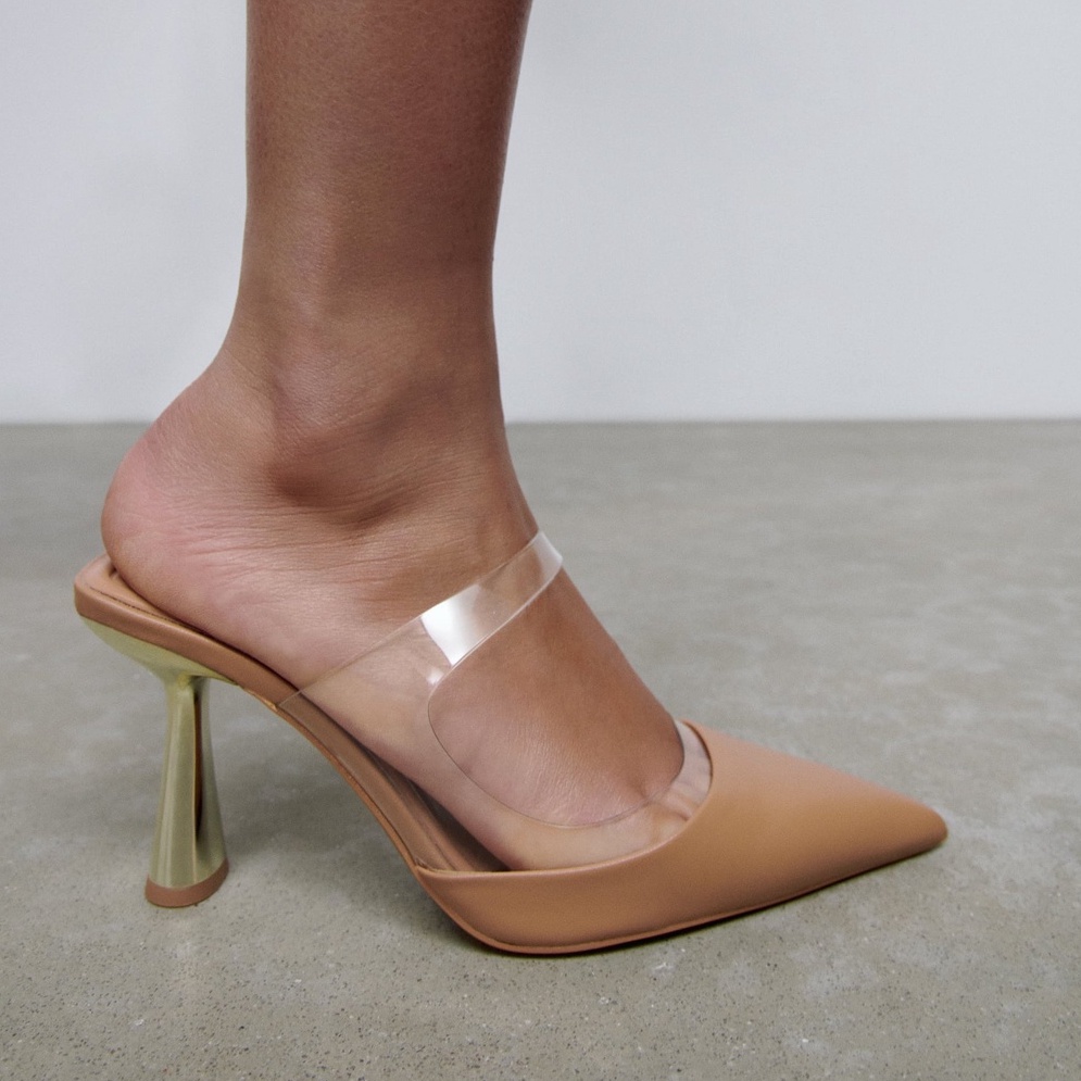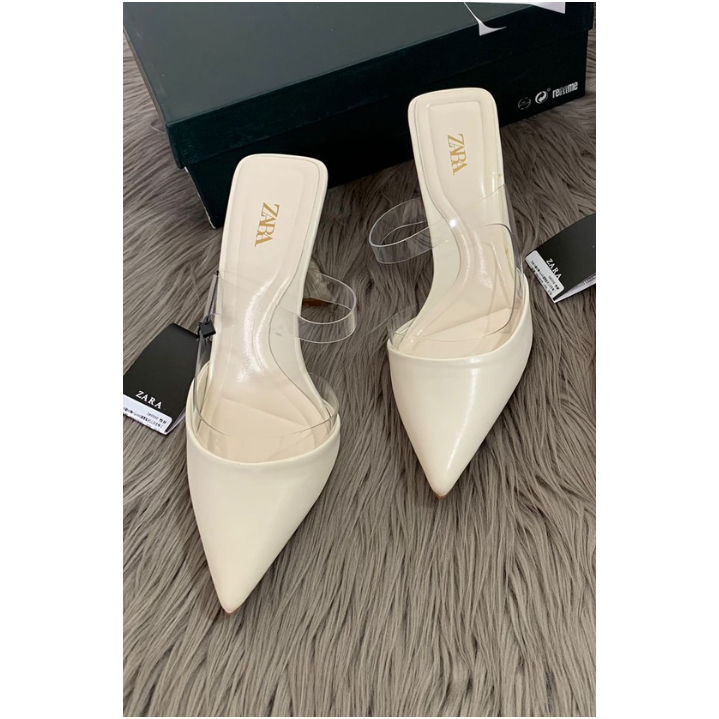 SEPATU HEELS VINYLS MULES ZR-125 COKLAT PUTIH ELEGAN