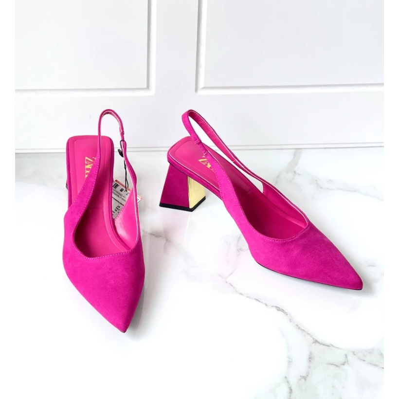 SEPATU ZR-172 BLOCK HEELS SUEDE HITAM/PINK