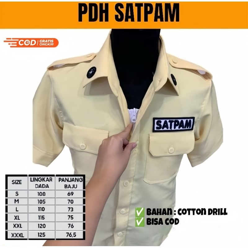 RS_OFFICIAL | serangan pdh satpam resleting tangan pendek kancing + resleting bahan tebal baju cream celana coklat