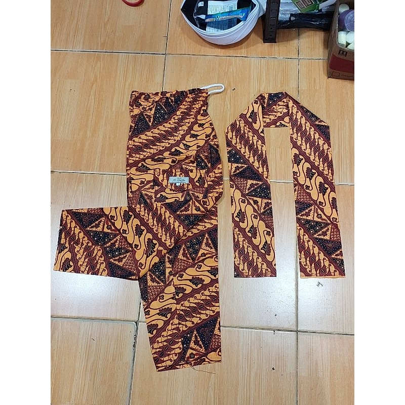 CELANA BATIK BOIM DAN SELENDANG BATIK ANAK SAMPAI DEWASA WARNA COKLAT DAN PUTIH I SELENDANG BATIK COKLAT PUTIH