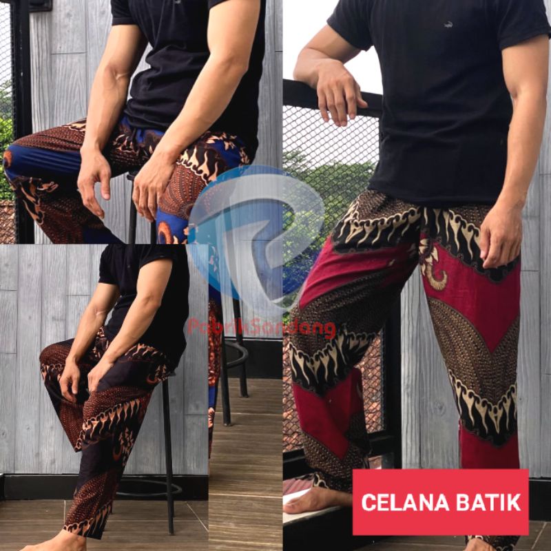 Celana batik untuk mudik short long pants kolor harian santai boim trendi saku panjang ukuran pria wanita dewasa pinggan