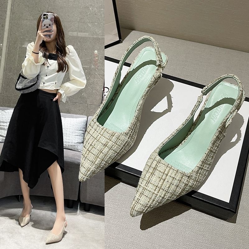 NF3123 - HEEL SLING BACK FASHION WANITA SEPATU HAK TINGGI SEPATU HAK PESTA TWEED