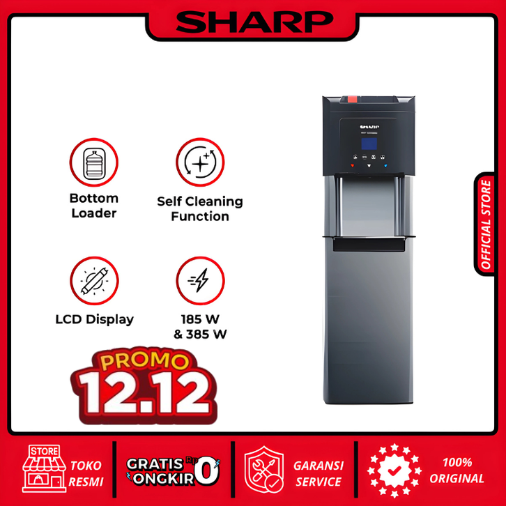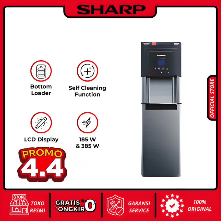 DISPENSER PANAS DINGIN ES SHARP SWD-75EHL-SL BOTTOM LOADING 3 KRAN - DISPENSER GALON BAWAH SHARP OFFICIAL STORE