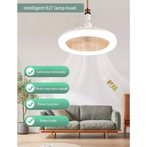 LAMPU KIPAS ANGIN AC E27 60 WAT LAMPU LED KIPAS ANGIN GANTUNG PLAFON + REMOTE 2 IN 1