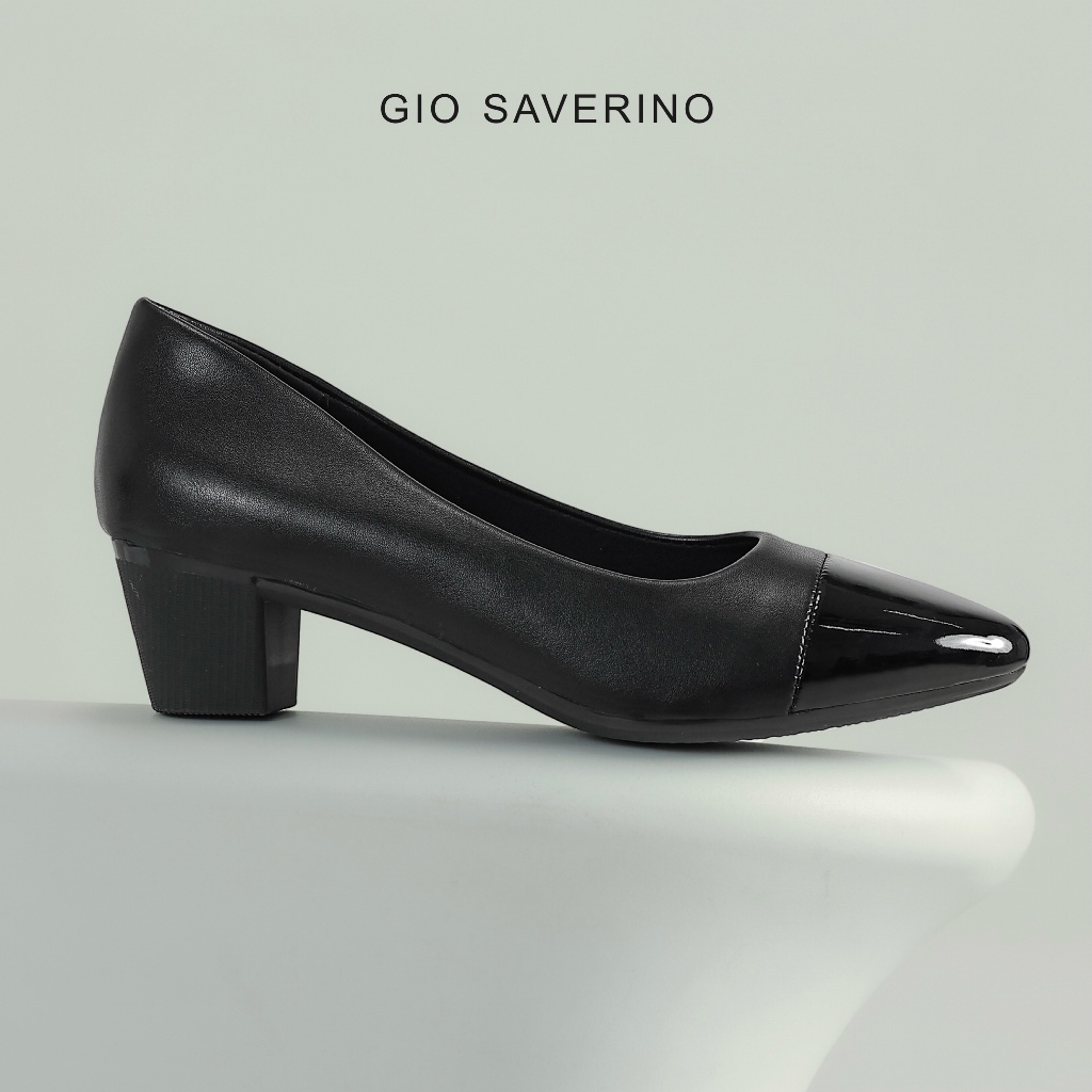 GIO SAVERINO SEPATU WANITA PANTOFEL HITAM HAK SEDANG 5CM CLOVER